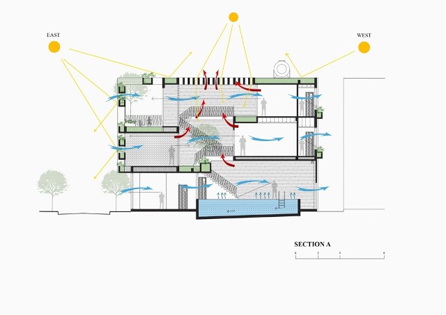 | Thiết kế tối ưu dụng tận dụng ánh nắng mặt trời một cách thông minh vào buổi sáng, giảm nắng nóng vào buổi chiều và thông gió hiệu quả trong nhà. |
