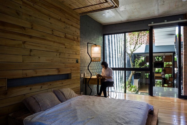 | Phòng ngủ cũng không thiếu bóng cây xanh và ánh sáng tự nhiên. |