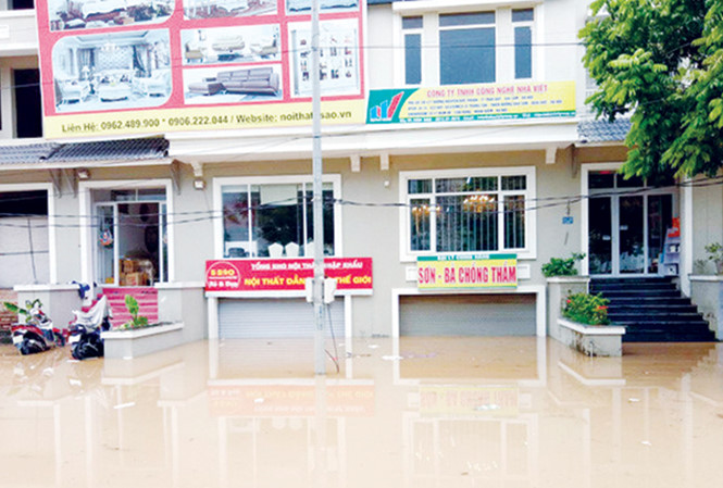 Khu nhà liền kề đoạn qua Thiên Đường Bảo Sơn ngập sâu trong nước.