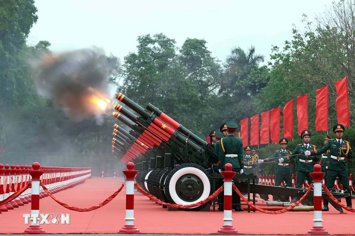 Nghi thức bắn 21 loạt đại bác chào mừng Tổng thống Hàn Quốc Lee Jae Myung và Phu nhân thăm cấp Nhà nước tới Việt Nam. Ảnh: An Đăng/TTXVN