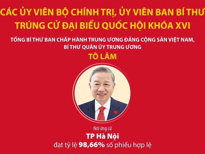 Trân trọng giới thiệu bạn đọc Danh sách các đồng chí Ủy viên Bộ Chính trị, Ủy viên Ban Bí thư trúng cử đại biểu Quốc hội khóa XVI.