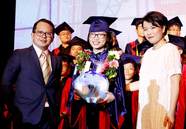 | Đại diện Trung tâm YOLA – Anh ngữ thông minh trao phần thưởng cho các học viên. Ảnh: Trung Dũng |