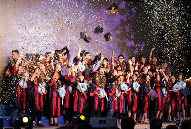 | Học viên thực hiện nghi thức tung nón tốt nghiệp |