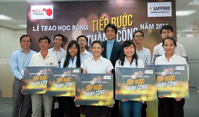 Dựa trên kết quả học tập ưu tú của các sinh viên, Sapporo tiếp tục xét duyệt trao học bổng Tiếp bước thành công năm 2016. Trong đó còn có 01 phần thưởng khích lệ trị giá 5 triệu đồng được trao cho sinh viên Nguyễn Huy Quốc vì thành tích nổi bật trong học tập.
