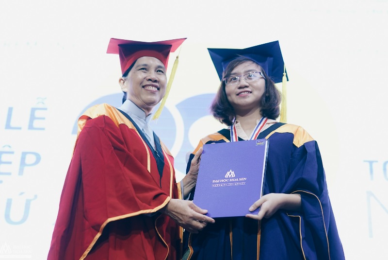 | Ts Bùi Trân Phượng trao bằng cho sinh viên ĐH Hoa Sen tốt nghiệp loại xuất sắc. Ảnh: P.T.H |