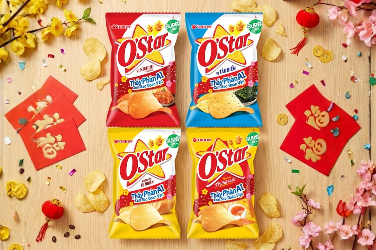 Các hương vị được bản địa hóa rõ nét, từ tảo biển, kim chi, phô mai trứng muối đến vị tự nhiên, phù hợp khẩu vị người trẻ. Khi kết hợp cùng trải nghiệm Thầy phán AI, O’star không chỉ là một món ăn vặt ngày Tết, mà được định vị như một “niềm vui nhỏ” đầu năm, vừa quen thuộc vừa mới mẻ.