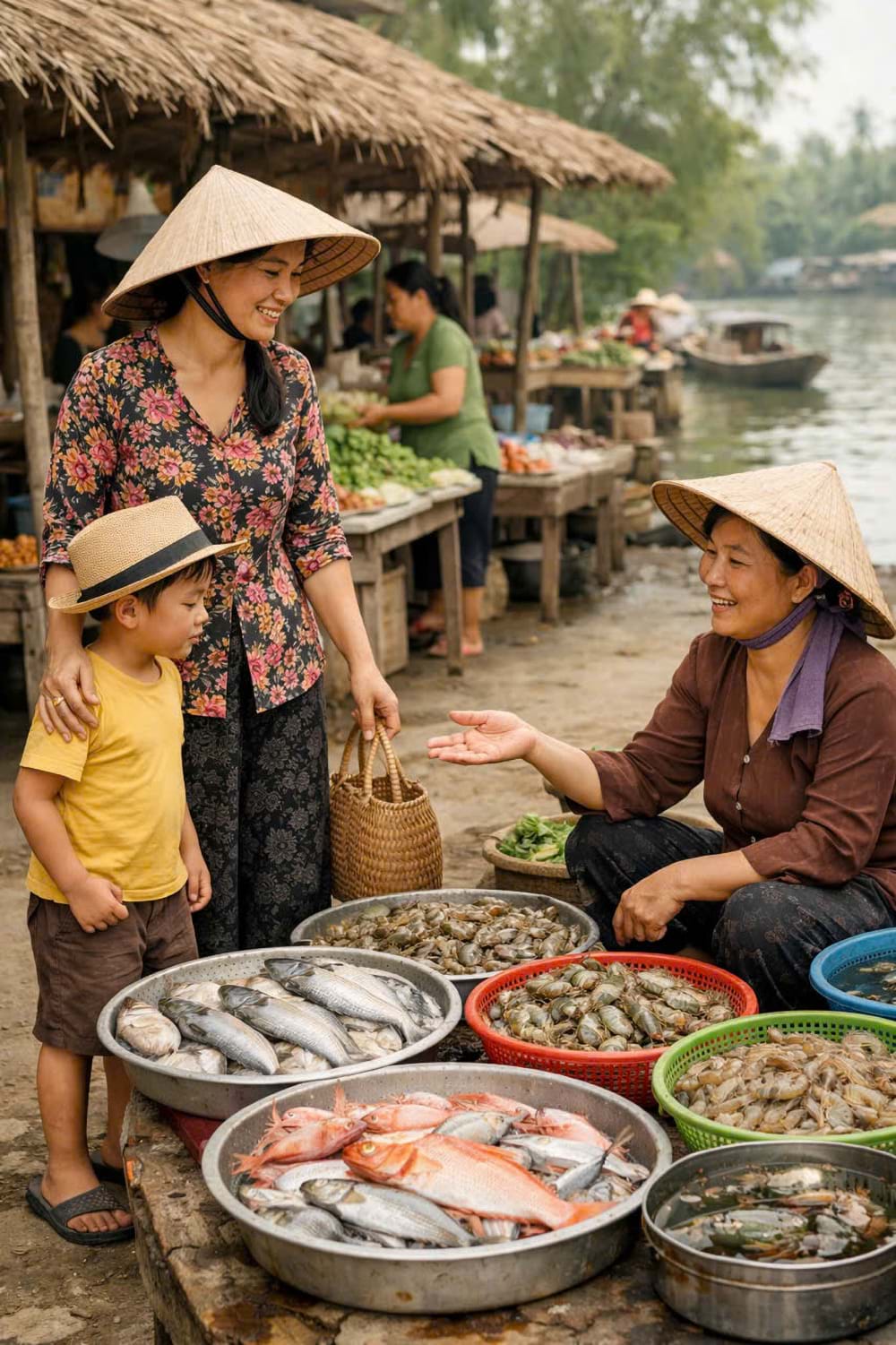 Chỉ biết, cái cười đó không còn tươi rói, với tôi. Chỉ biết, tôi sẽ dịu dàng ấm áp hơn, tôi không cằn nhằn chuyện cá nhỏ cá to, giá của ngày hôm nay sao cao hơn bữa trước, tôi sẽ cười cùng chị chứ không ra bộ khó đăm đăm, ra bộ ta đây không dễ bị gạt đâu, nghen. Tôi sẽ làm cái điều mà con trai tôi đã làm lâu rồi, khi nó thơm thảo sẻ cho chị ít bánh, kẹo mà nó có.
