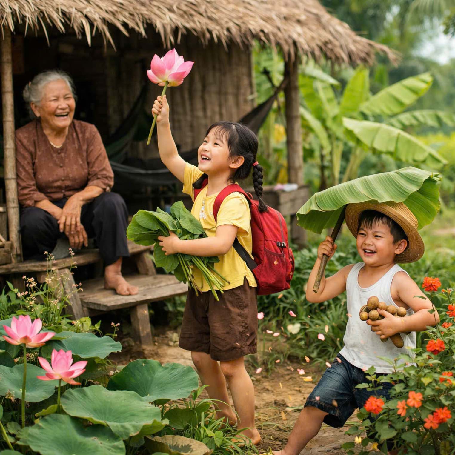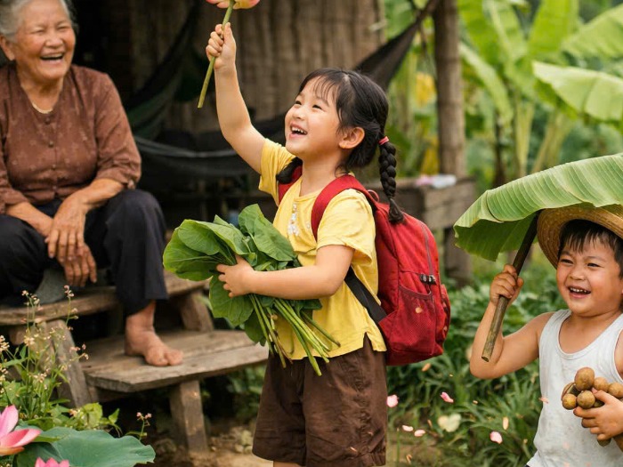 Giờ chỉ còn một bà ngoại nghe tiếng thở thậm thượt của chính mình ứ hự ừ hư. Hàng xóm thì ở bên kia rào. Trời ơi chừng nào mới tới lần sau, đám trẻ lại về xôn xao trước ngõ?!