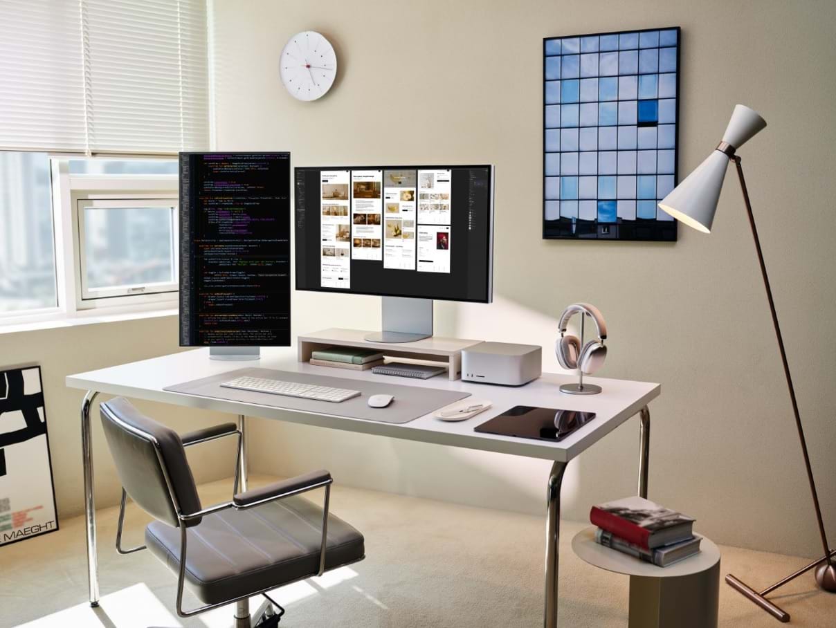 Không dừng lại ở đó, LG còn tích hợp KVM switch ngay trên màn hình. Điều này nghe có vẻ kỹ thuật, nhưng lại rất thực tế: người dùng có thể điều khiển đồng thời cả máy Mac và PC Windows bằng một bộ bàn phím và chuột duy nhất. Với những ai làm việc đa nền tảng, đây là một tiện ích gần như bắt buộc.