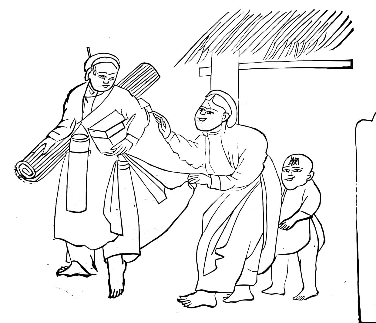 Hình thầy anh khóa đi thi trong bộ tranh của Henri Oger. Ảnh: TL