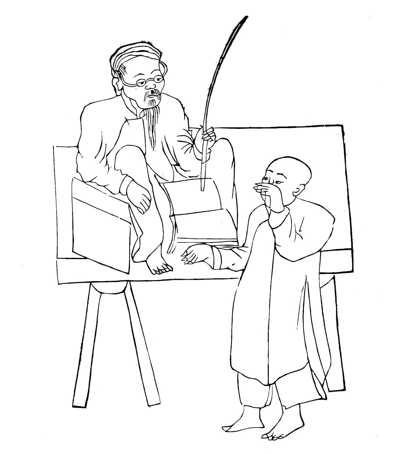 Hình thầy đồ dạy học trong bộ tranh của Henri Oger. Ảnh: TL