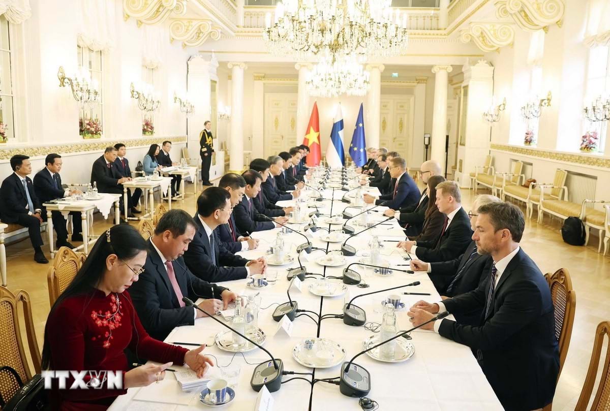Về phần mình, Tổng thống Alexander Stubb khẳng định Phần Lan sẵn sàng hợp tác với Việt Nam trong các lĩnh vực mà Phần Lan có thế mạnh và Việt Nam có nhu cầu như kinh tế tuần hoàn, lâm nghiệp, khoa học-công nghệ, giáo dục đào tạo, ứng phó với biến đổi khí hậu.