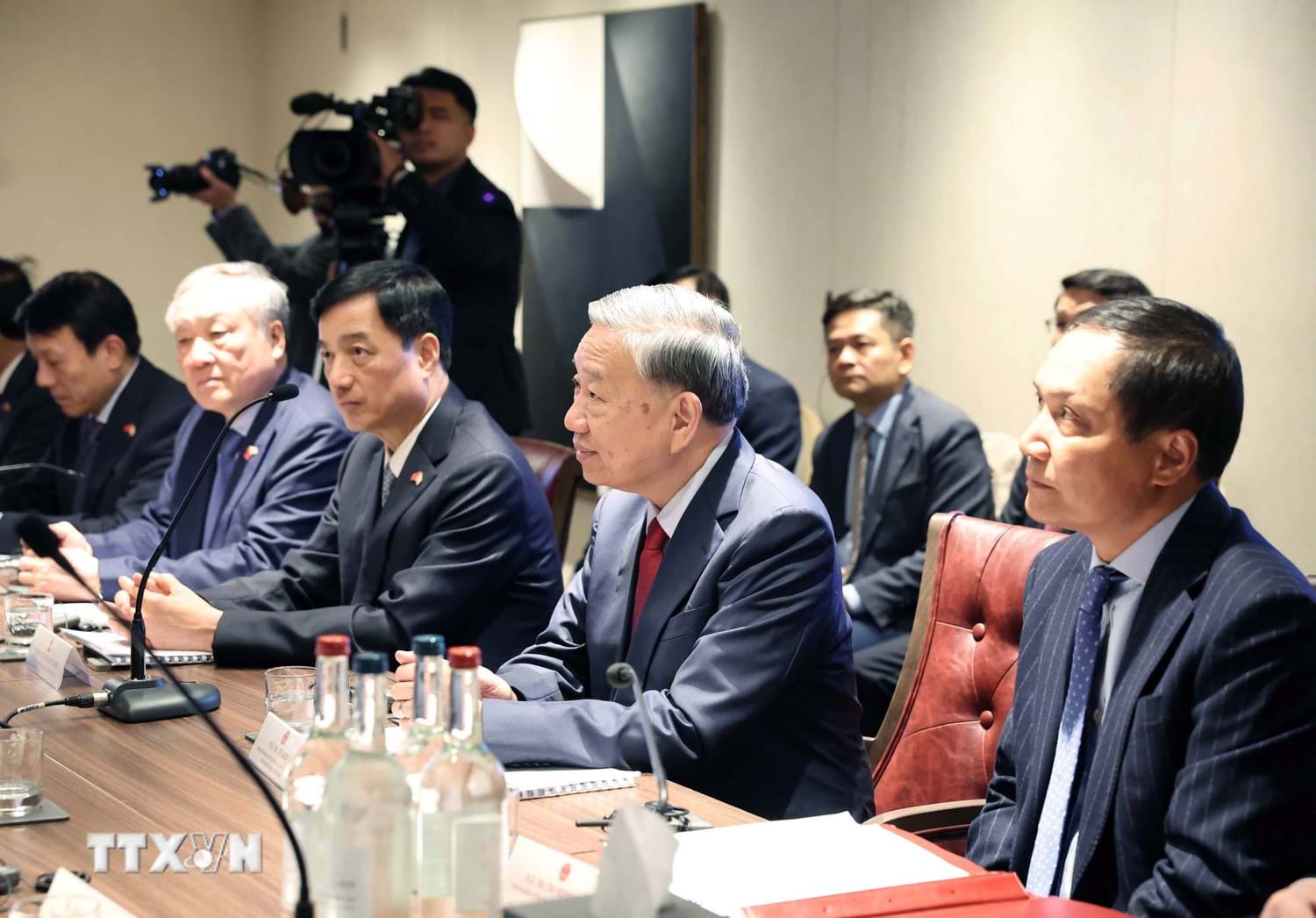 Tổng Bí thư Tô Lâm dự tọa đàm với các chuyên gia công nghệ của Anh và thế giới về AI và Chip bán dẫn. Ảnh: Thống Nhất/TTXVN