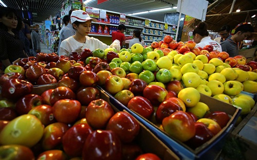 Thực tế, 1-2 năm trở lại đây, hoa quả nhập khẩu về nước ồ ạt, chủng loại ngày càng đa dạng. Đơn cử, tại các siêu thị như Metro, BigC, Fivimart... hoa quả nhập khẩu luôn được bày bán tràn ngập, chất thành đống, số lượng lên đến cả vài chục loại như: táo, lê, cherry, nho, xoài, dưa...