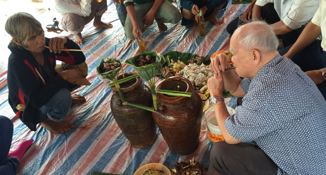 Tác giả đối tửu cùng Glơh bên ché rượu cần