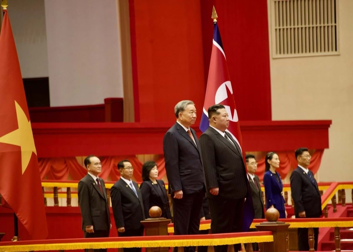 Tổng Bí thư Đảng Lao động Triều Tiên, Chủ tịch Quốc vụ nước Cộng hòa Dân chủ Nhân dân Triều Tiên Kim Jong Un đón và chào mừng Tổng Bí thư Tô Lâm thăm cấp Nhà nước tới Triều Tiên.