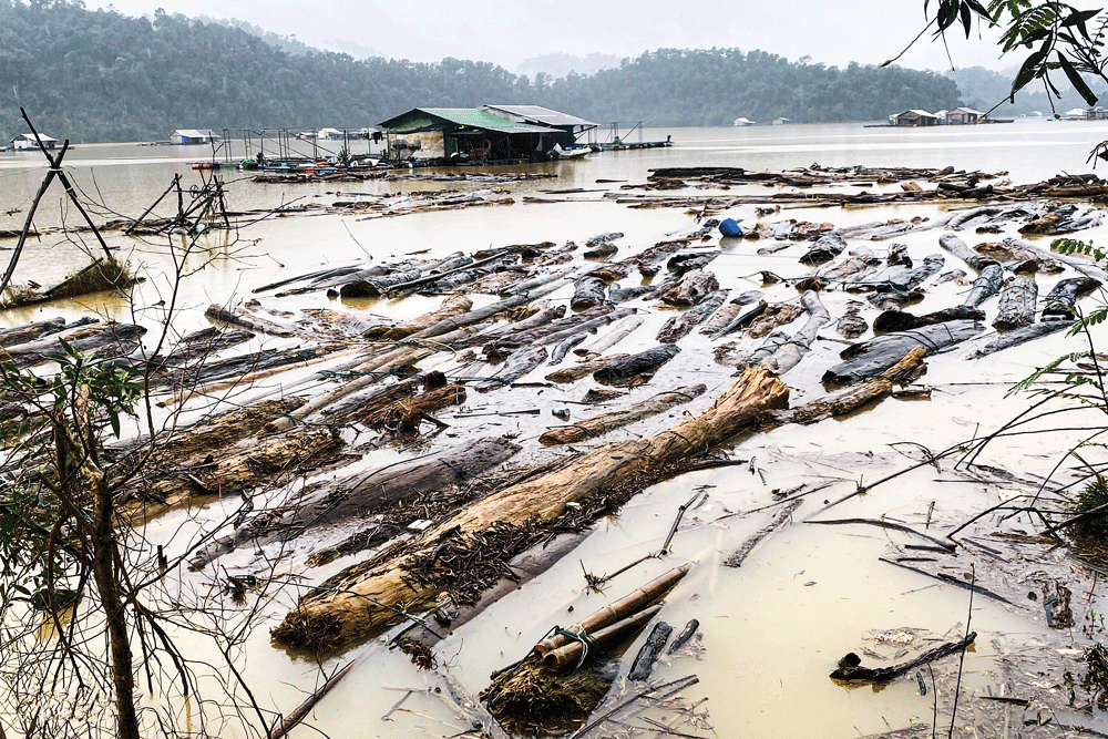 Những thách thức then chốt trong hệ thống quản lý thiên tai của Việt Nam đã bộc lộ rõ. Trong ảnh: sau những đợt lũ lớn liên tiếp cuối tháng 10 đầu tháng 11.2025, gần 90 tấn gỗ tươi, củi mục đã trôi dạt về các lòng hồ thủy điện, thủy lợi tại thành phố Huế. Ảnh: Vi Thảo