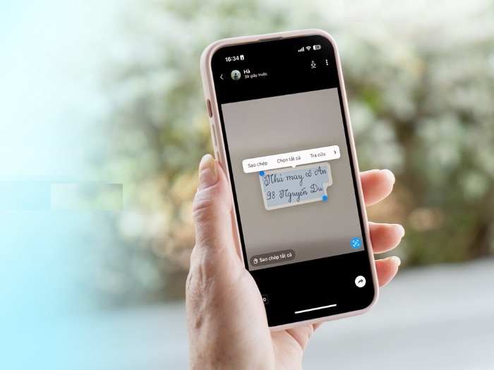 Bước 3: Nhấn giữ vào phần chữ trên ảnh để sao chép hoặc thực hiện các tác vụ khác như tra cứu, dịch thuật, tìm trên Web, chia sẻ…