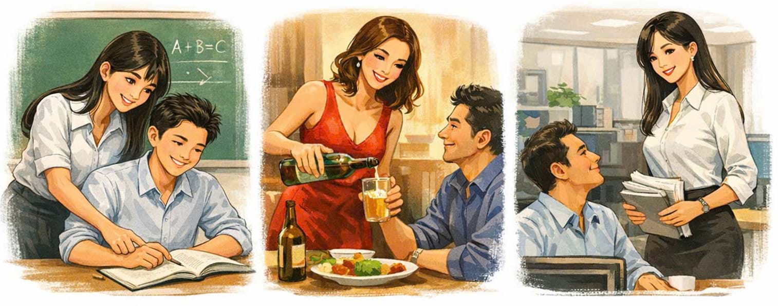 Ba khái niệm chỉ 3 đối tượng khác nhau. Một chỉ “con của thầy cô giáo dạy ta (hoặc dạy ai đó)”. Một chỉ “vợ của bạn mình”. Một chỉ “phụ nữ (nào đó) đang làm cùng cơ quan”. Ta thường nghe mọi người nói, đại loại: “Cậu hãy dừng mọi chuyện với cô nàng H. đi nhé. Người ta đang bàn tán, dị nghị đấy”. “Chơi đâu thì chơi, nhưng nói chung, với “con thầy, vợ bạn, gái cơ quan” thì nên tránh xa. Đụng vào rách việc lắm đấy!”.