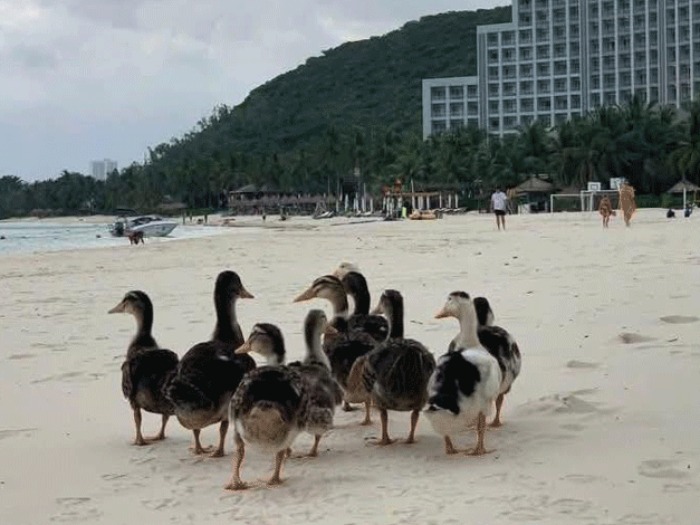 Đàn vịt trôi dạt vào biển ở Hòn Tre, trong khuôn viên khu nghỉ dưỡng 5 sao. Ảnh: internet