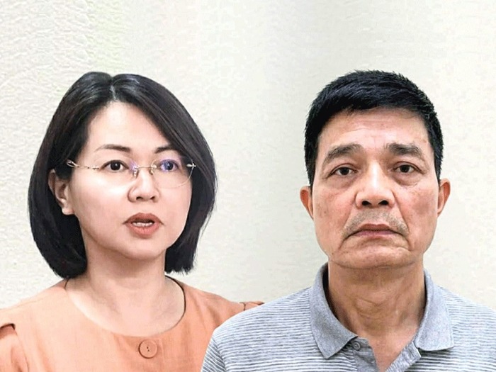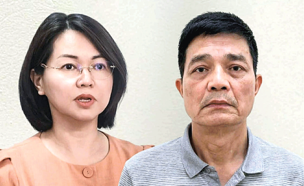 Hai cựu cục trưởng Cục An toàn thực phẩm bị cáo buộc nhận hối lộ: Nguyễn Thanh Phong (phải) và Trần Việt Nga. Ảnh: CTV